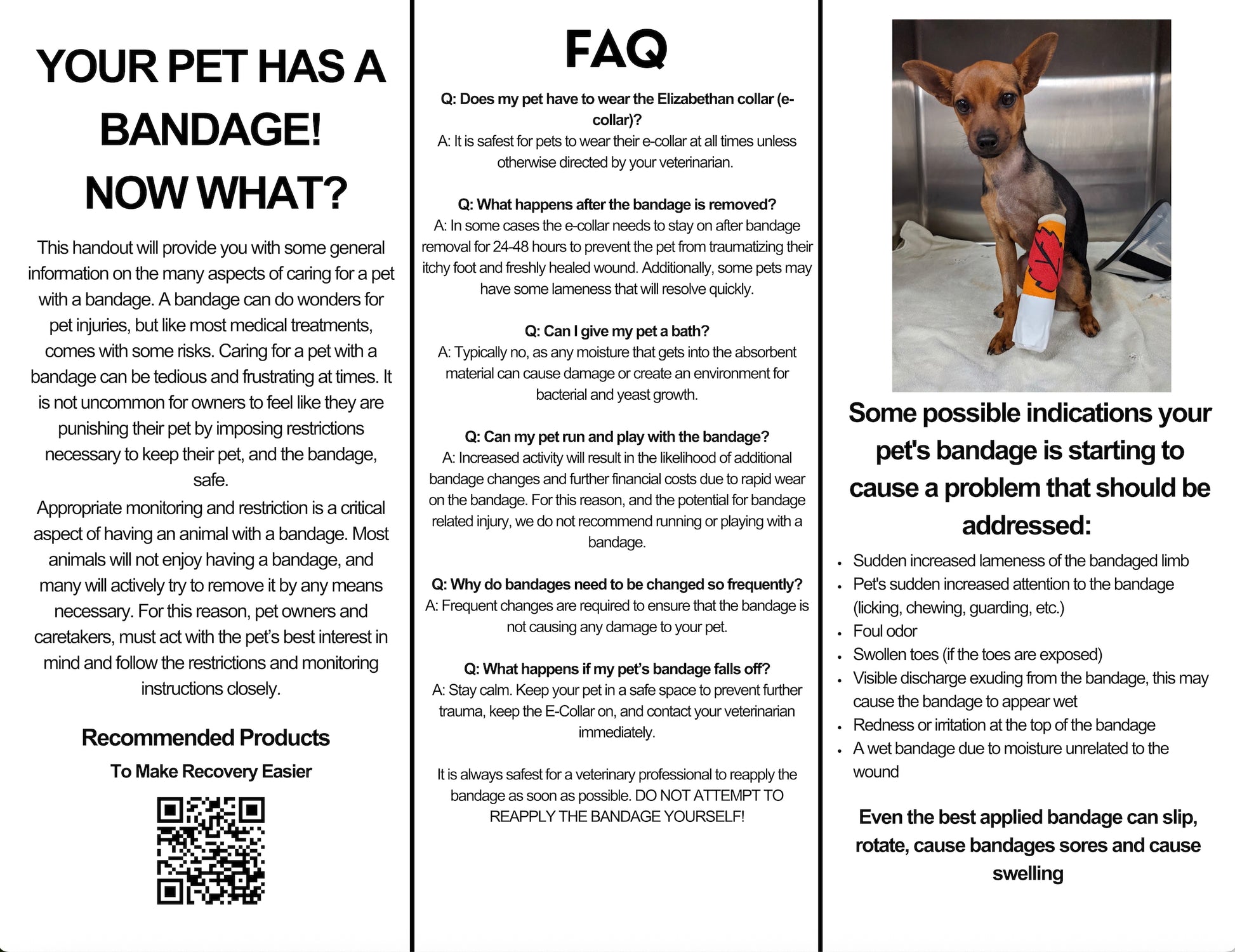 From moisture risks and activity restriction to FAQs and warning signs of bandage problems, this handout empowers clients to become active, informed members of the recovery team. Clear guidance means fewer complications, fewer emergency calls, and better healing for your patients.